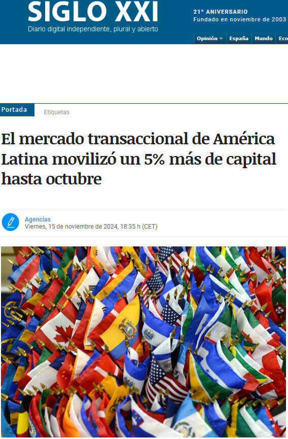 El mercado transaccional de América Latina movilizó un 5% más de capital hasta octubre