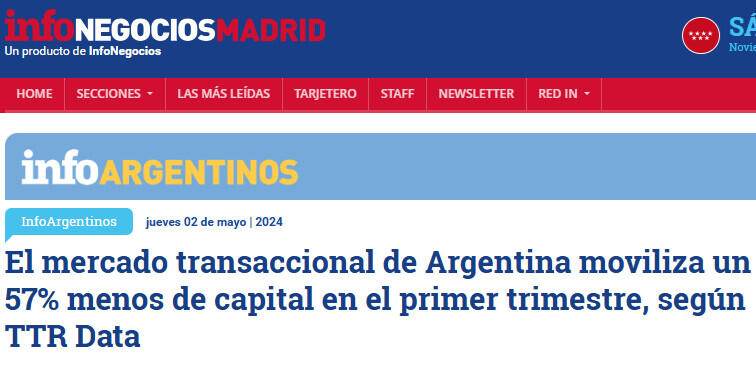 El mercado transaccional de Argentina moviliza un 57% menos de capital en el primer trimestre, según TTR Data