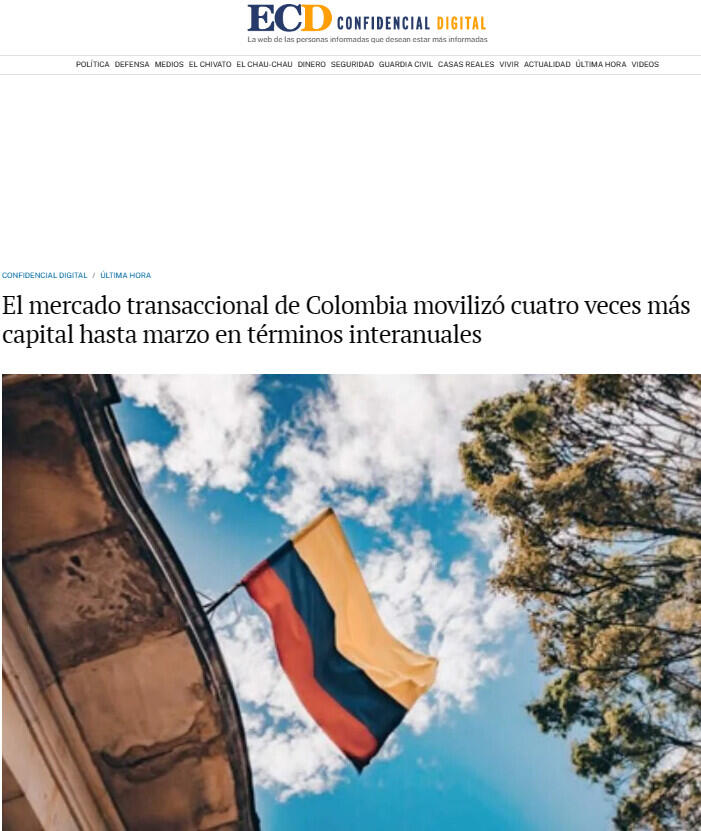 El mercado transaccional de Colombia movilizó cuatro veces más capital hasta marzo en términos interanuales