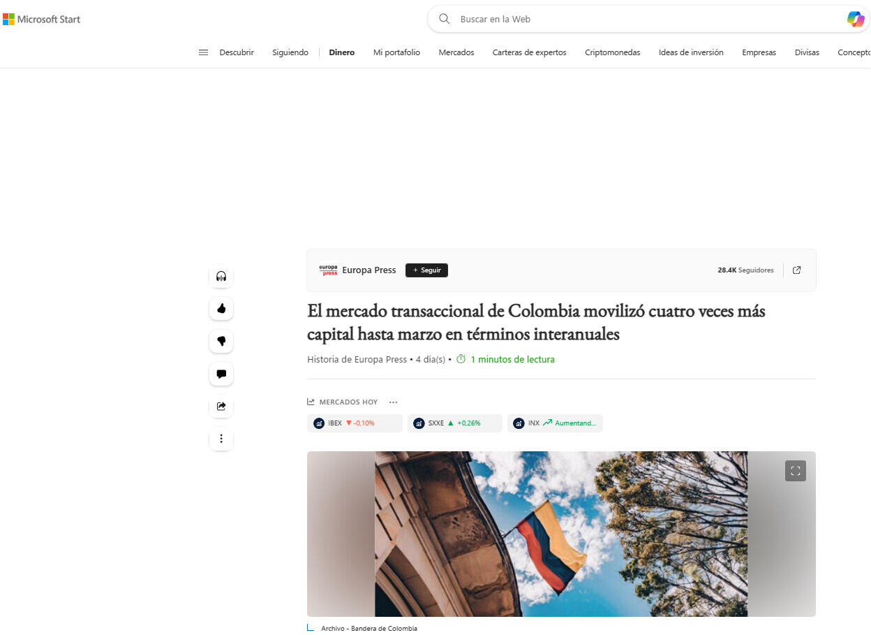 El mercado transaccional de Colombia movilizó cuatro veces más capital hasta marzo en términos interanuales