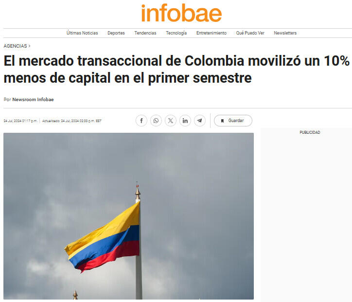El mercado transaccional de Colombia movilizó un 10% menos de capital en el primer semestre