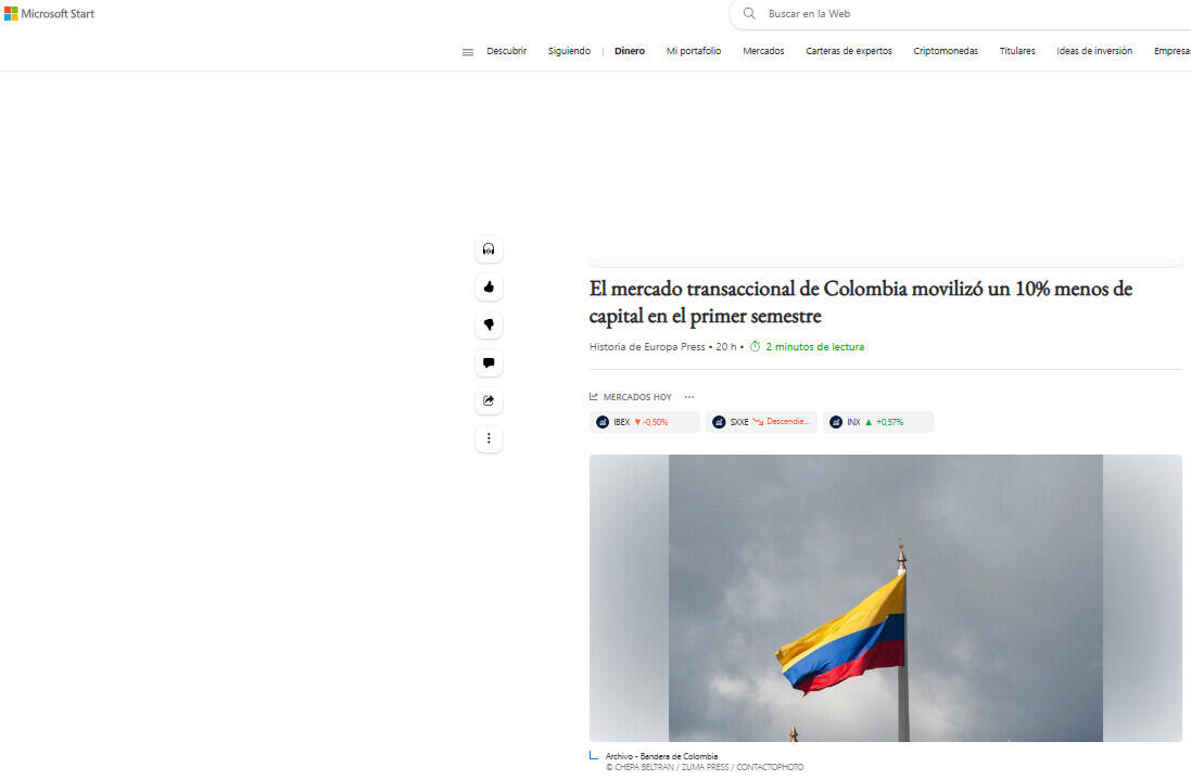 El mercado transaccional de Colombia movilizó un 10% menos de capital en el primer semestre
