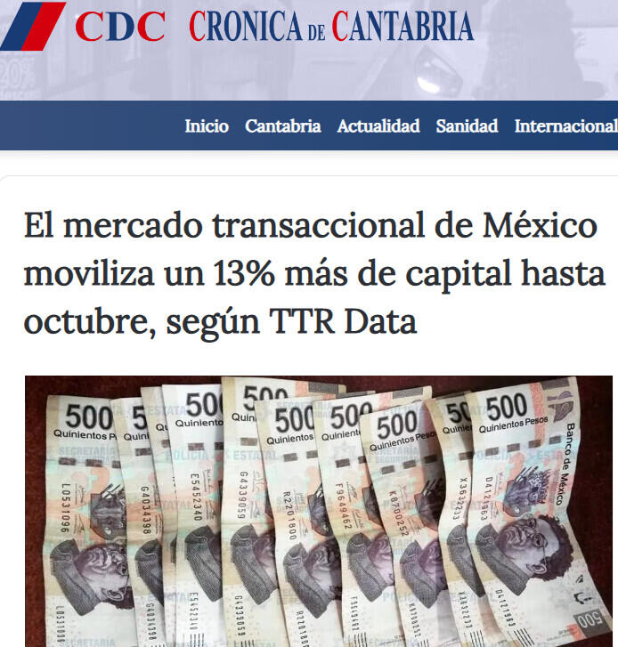 El mercado transaccional de México moviliza un 13% más de capital hasta octubre, según TTR Data