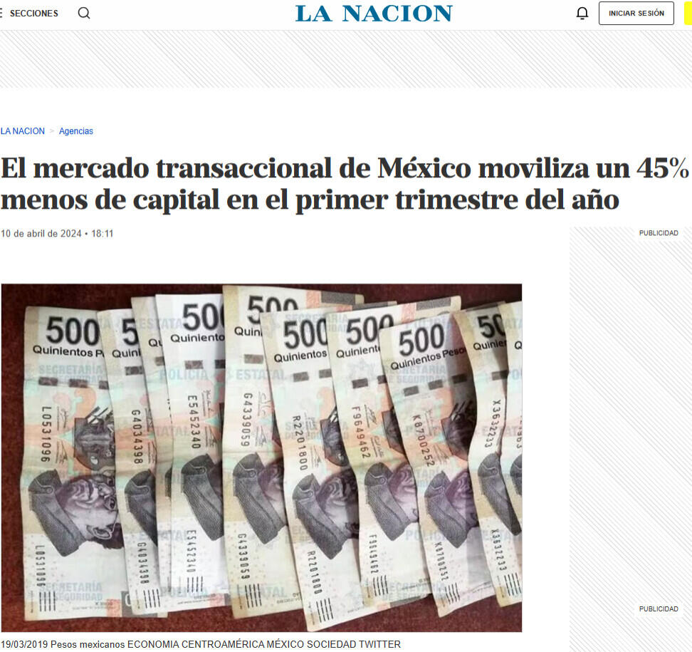 El mercado transaccional de México moviliza un 45% menos de capital en el primer trimestre del año