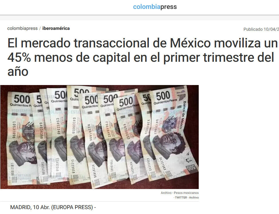 El mercado transaccional de México moviliza un 45% menos de capital en el primer trimestre del año
