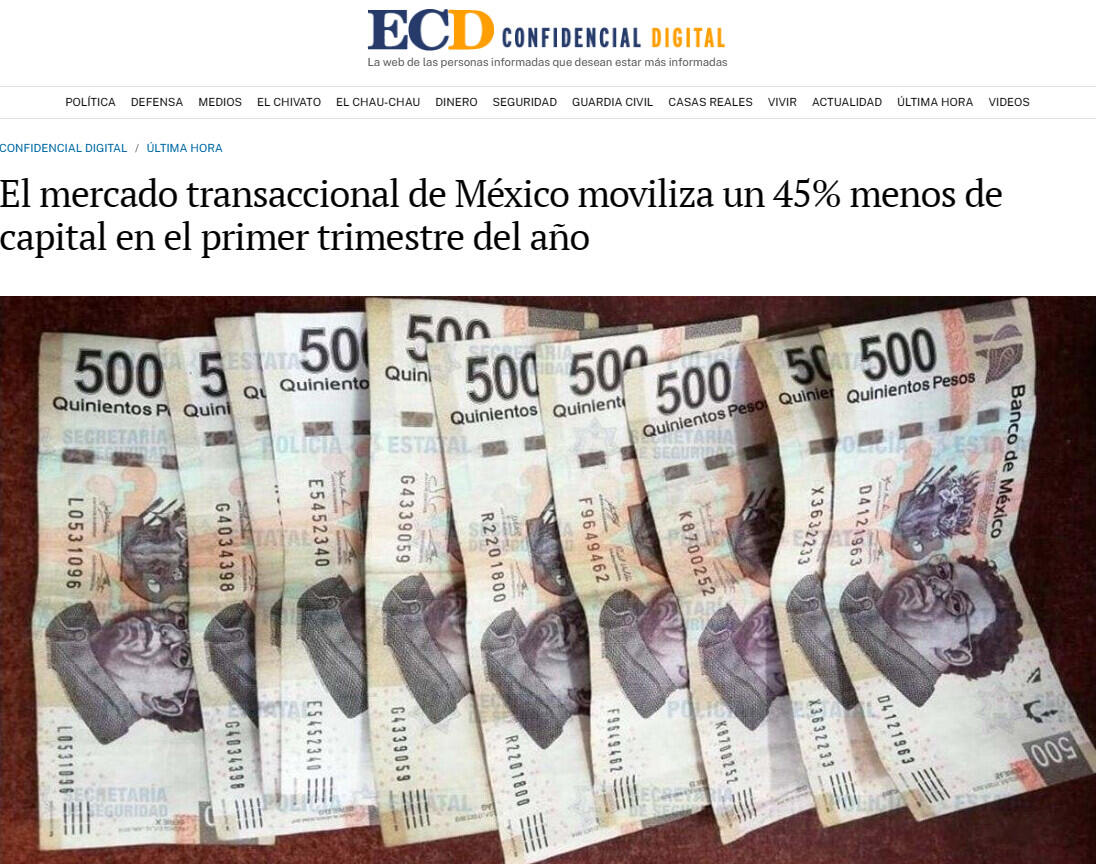 El mercado transaccional de México moviliza un 45% menos de capital en el primer trimestre del año