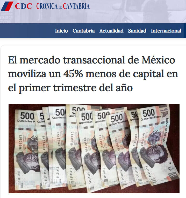 El mercado transaccional de México moviliza un 45% menos de capital en el primer trimestre del año