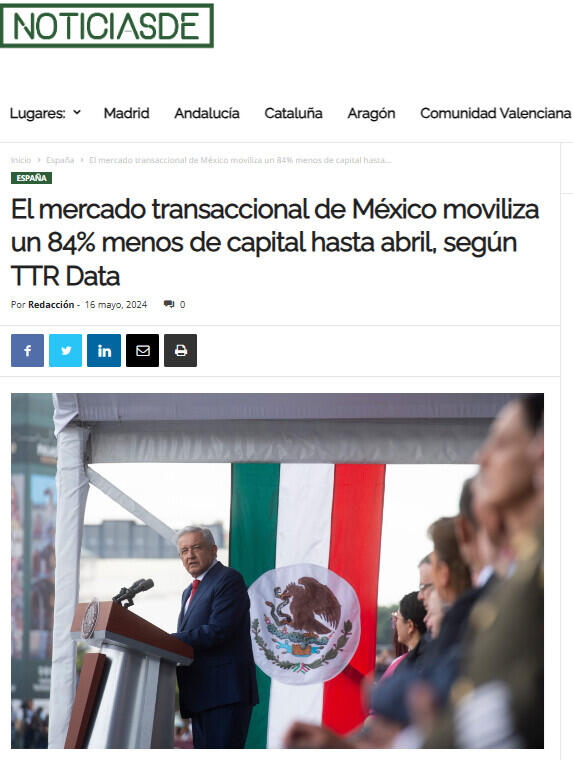 El mercado transaccional de México moviliza un 84% menos de capital hasta abril, según TTR Data