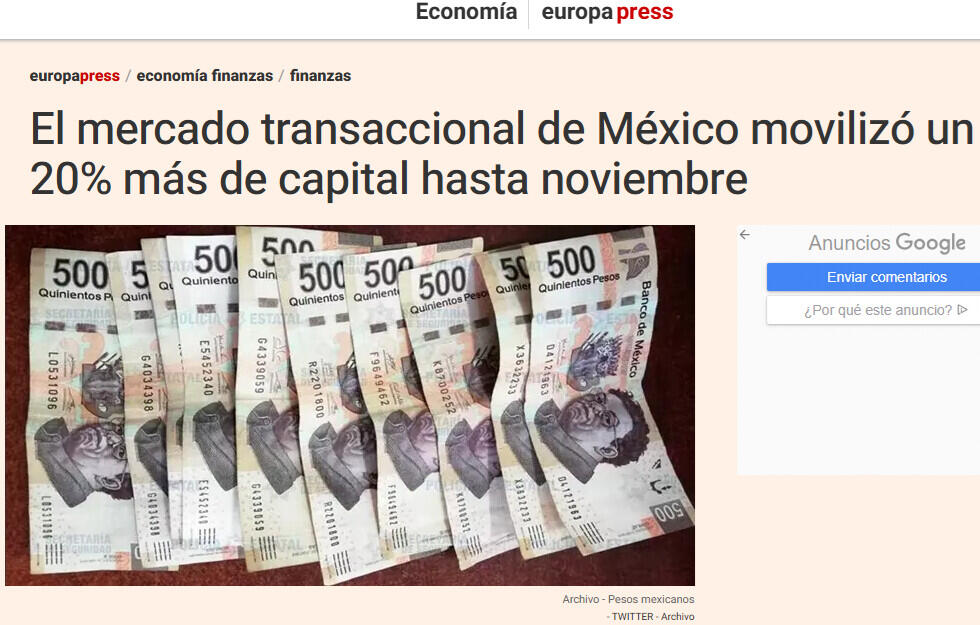El mercado transaccional de México movilizó un 20% más de capital hasta noviembre