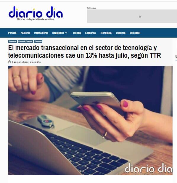 El mercado transaccional en el sector de tecnología y telecomunicaciones cae un 13% hasta julio, según TTR