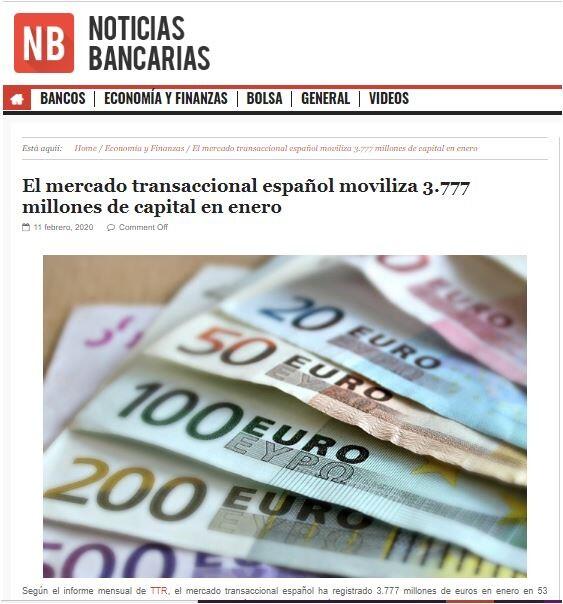 El mercado transaccional espaņol moviliza 3.777 millones de capital en enero