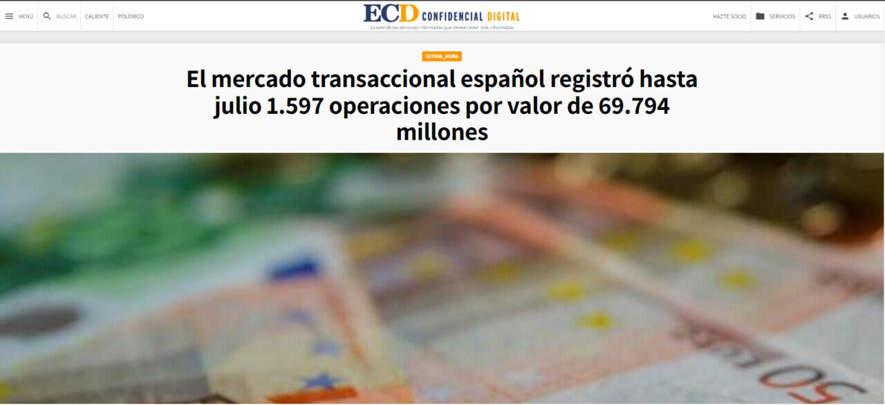 El mercado transaccional espaņol registrķ hasta julio 1.597 operaciones por valor de 69.794 millones