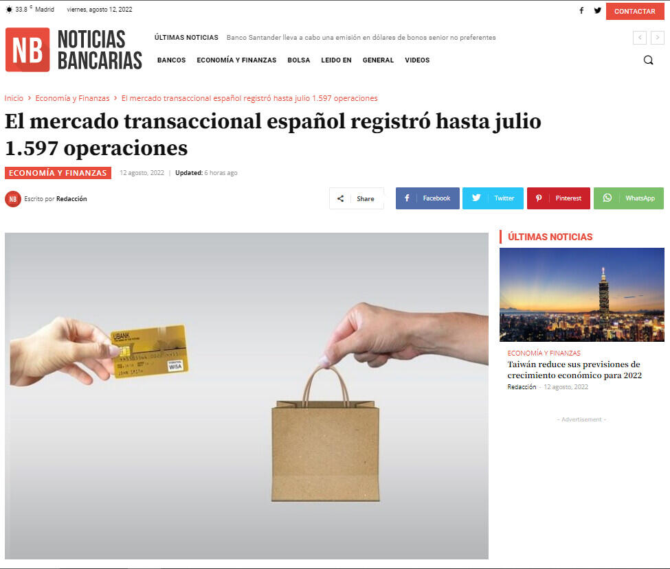 El mercado transaccional espaņol registrķ hasta julio 1.597 operaciones