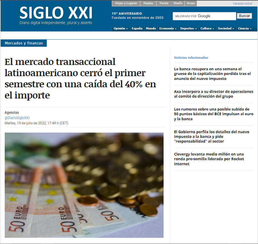 El mercado transaccional latinoamericano cerró el primer semestre con una caída del 40% en el importe