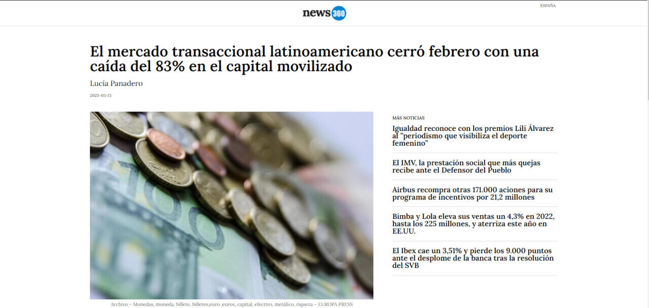 El mercado transaccional latinoamericano cerró febrero con una caída del 83% en el capital movilizado