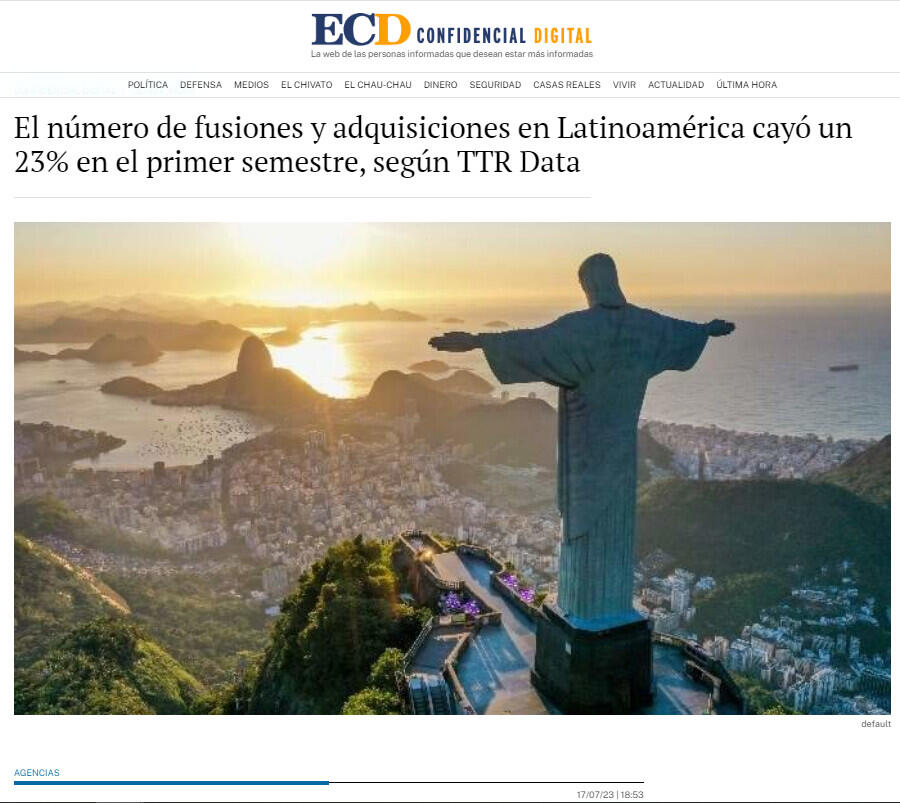 El número de fusiones y adquisiciones en Latinoamérica cayó un 23% en el primer semestre, según TTR Data