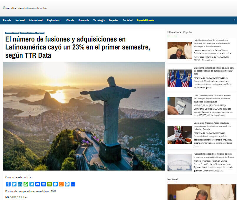 El número de fusiones y adquisiciones en Latinoamérica cayó un 23% en el primer semestre, según TTR Data