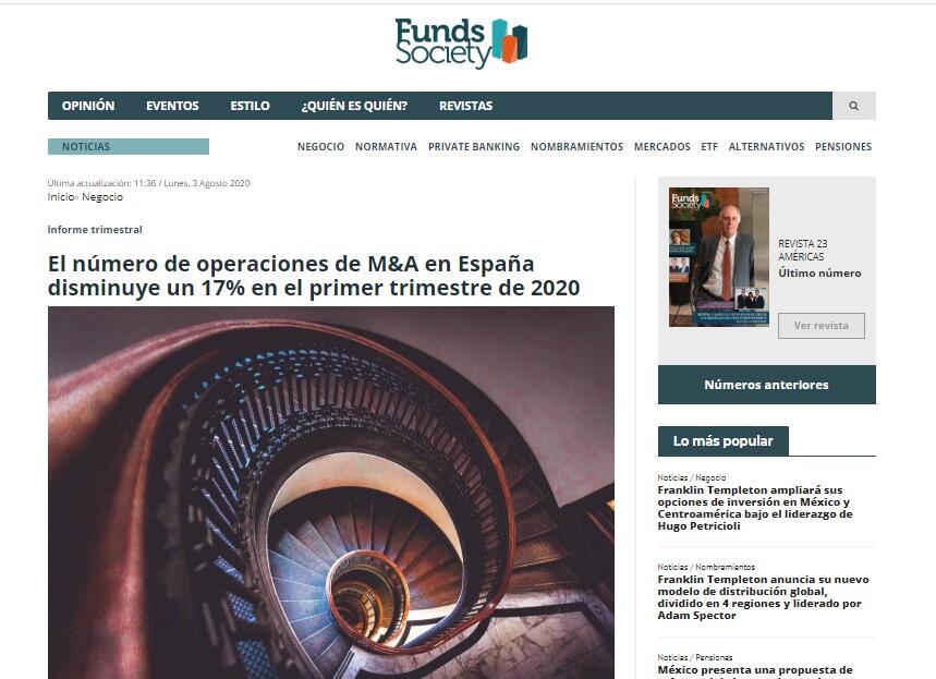 El número de operaciones de M&A en España disminuye un 17% en el primer trimestre de 2020