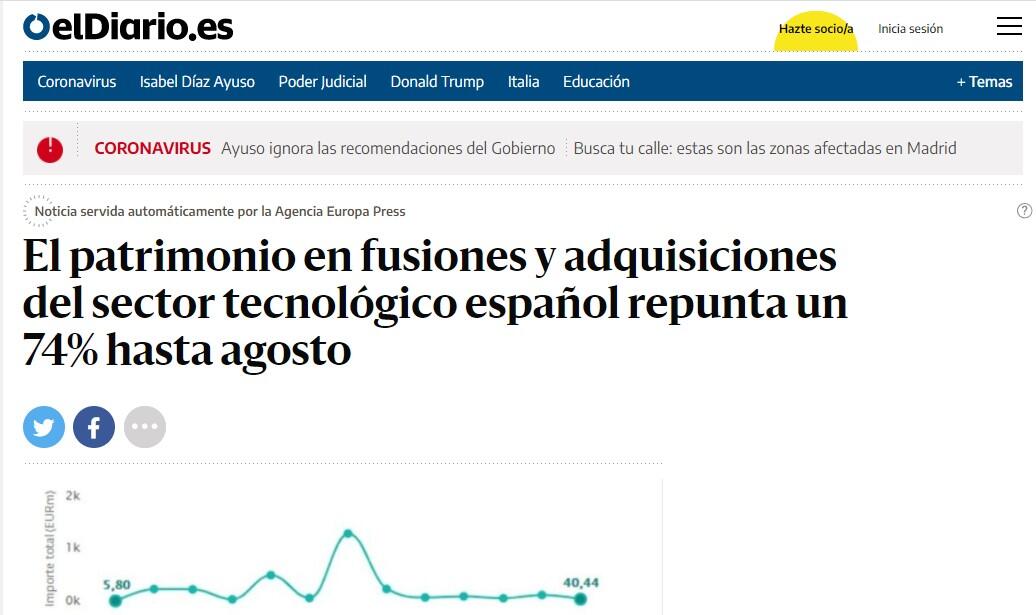 El patrimonio en fusiones y adquisiciones del sector tecnológico español repunta un 74% hasta agosto