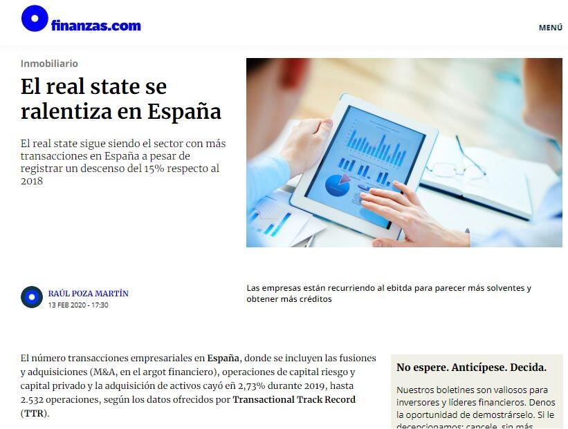 El real state sigue siendo el sector con más transacciones en España a pesar de registrar un descenso del 15% respecto al 2018