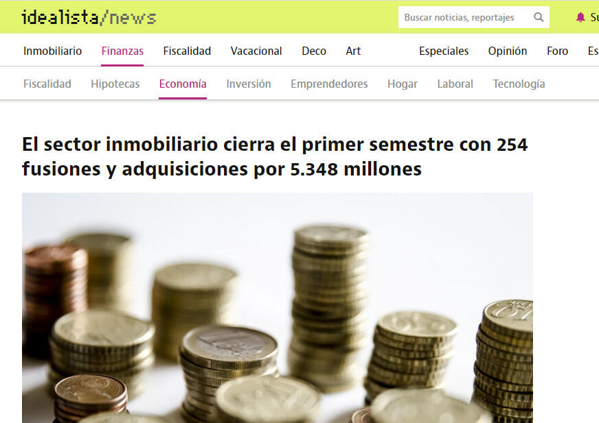 El sector inmobiliario cierra el primer semestre con 254 fusiones y adquisiciones por 5.348 millones