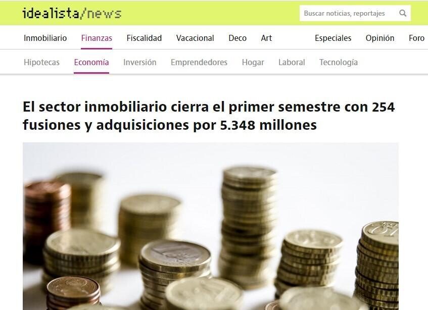 El sector inmobiliario cierra el primer semestre con 254 fusiones y adquisiciones por 5.348 millones