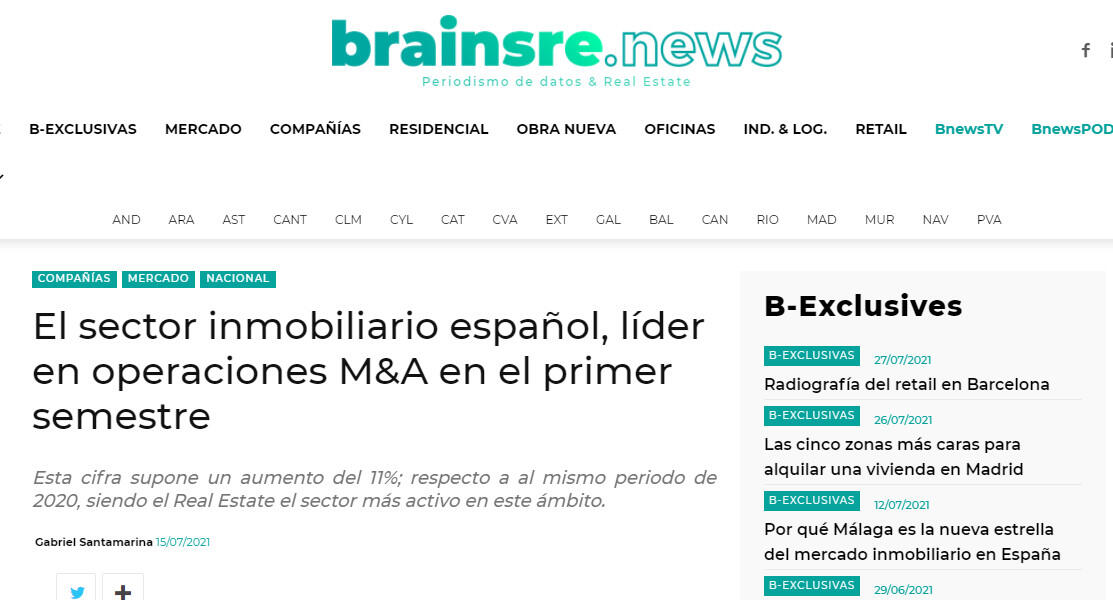 El sector inmobiliario español, líder en operaciones M&A en el primer semestre
