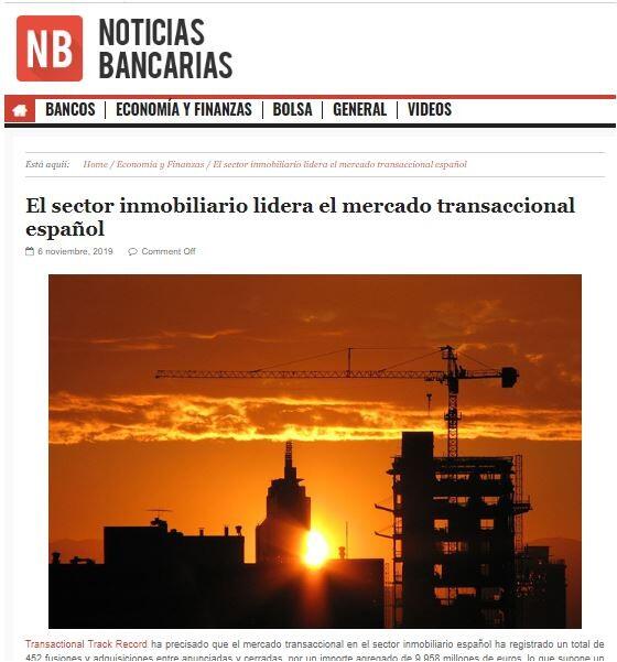 El sector inmobiliario lidera el mercado transaccional espaņol