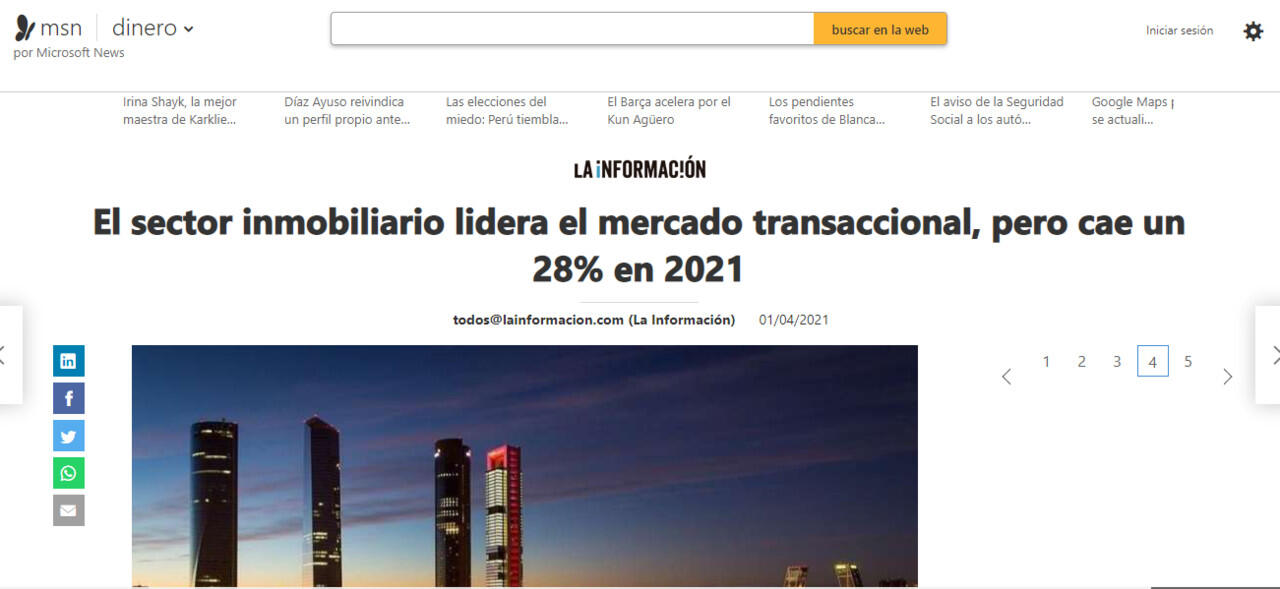 El sector inmobiliario lidera el mercado transaccional, pero cae un 28% en 2021