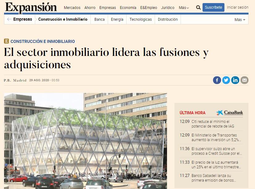 El sector inmobiliario lidera las fusiones y adquisiciones