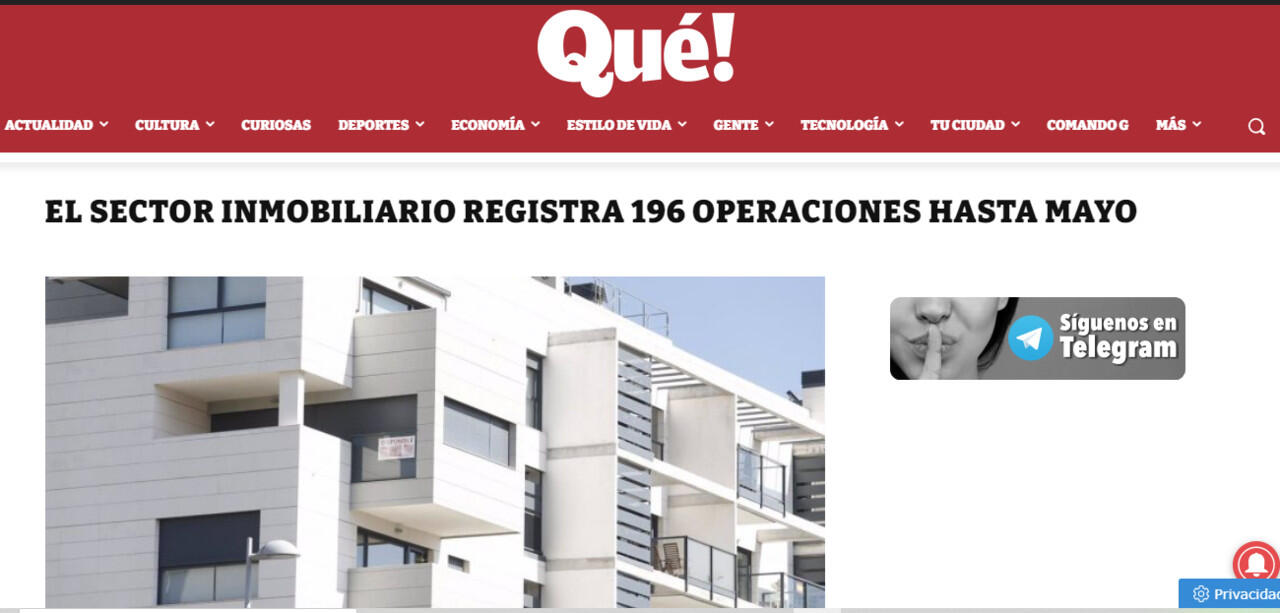 El sector inmobiliario registra 196 operaciones hasta mayo