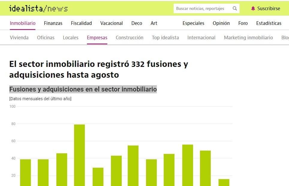 El sector inmobiliario registrķ 332 fusiones y adquisiciones hasta agosto