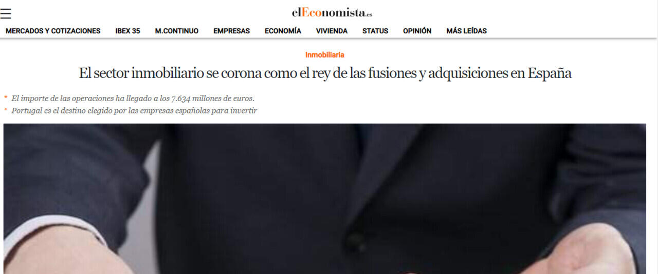 El sector inmobiliario se corona como el rey de las fusiones y adquisiciones en Espaņa