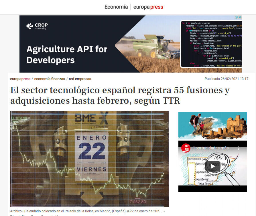 El sector tecnológico español registra 55 fusiones y adquisiciones hasta febrero, según TTR