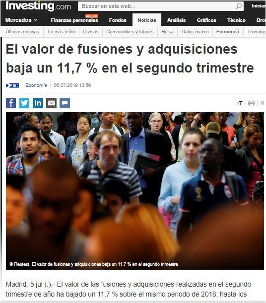 El valor de fusiones y adquisiciones baja un 11,7 % en el segundo trimestre