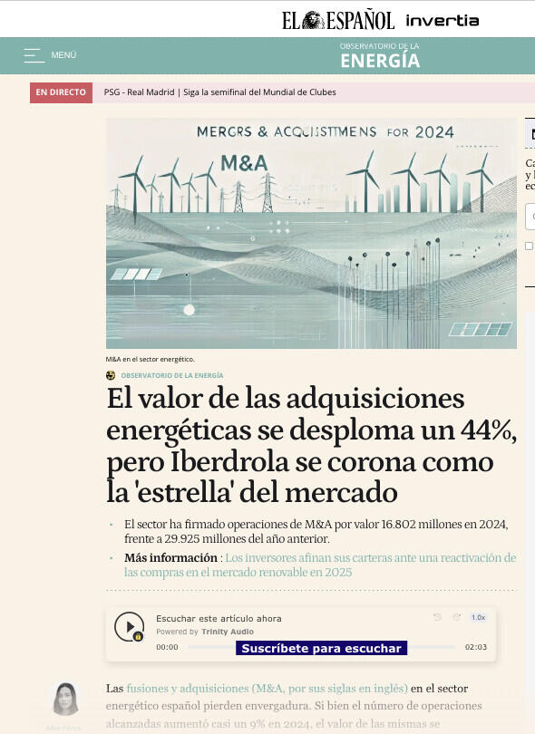 A partir de 2023, factores como la volatilidad de los precios eléctricos, tipos de interés al alza y la incertidumbre geopolítica frenaron el valor de las operaciones, aunque el interés estratégico en el sector sigue vivo.