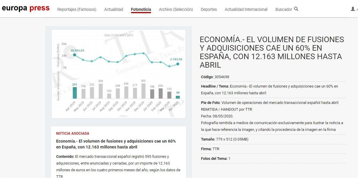 El mercado transaccional español registró 595 fusiones y adquisiciones, entre anunciadas y cerradas, por un importe de 12.163 millones de euros en los cuatro primeros meses del año, según los datos de TTR.