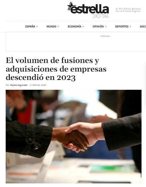 El volumen de fusiones y adquisiciones de empresas descendiķ en 2023