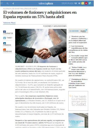 En cuanto al número de operaciones, se contabilizaron 681, un 9,1% más. En el mes de abril, se anotaron 144 fusiones y adquisiciones (-13,2%), que sumaron un importe agregado de 11.734 millones de euros (+80,3%). El sector más activo más activo del año es el inmobiliario, con 158 transacciones, seguido por el tecnológico (92) y el de Internet (58).