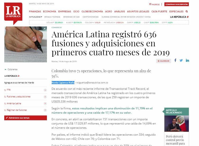 Este número de adquisiciones muestra una tendencia de crecimiento en este tipo de transacciones, después de mostrar declives en número de compras empresariales en los meses de febrero y marzo. TTR indica que al menos unas cuatro empresas en el mercado local hicieron compras de por lo menos unos US$ 124 millones en abril.