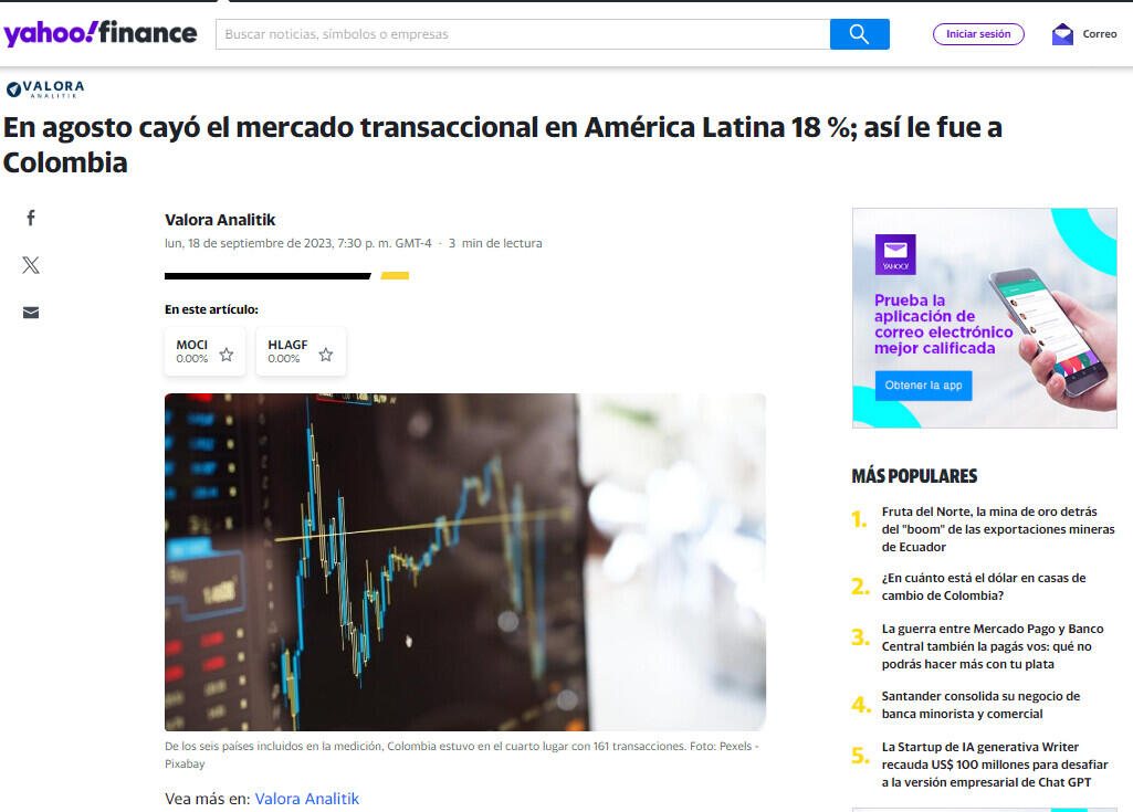 En agosto cayó el mercado transaccional en América Latina 18 %; así le fue a Colombia