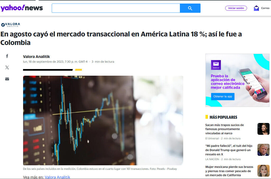 En agosto cayó el mercado transaccional en América Latina 18 %; así le fue a Colombia