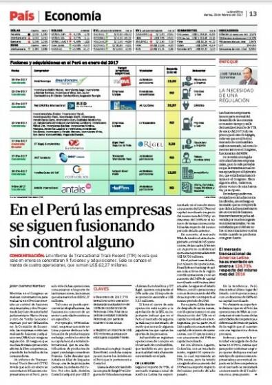 No obstante es importante destacar que en el Perú las operaciones de M&A se concretan sin el visto bueno de las autoridades de competencia,a diferencia del resto de países de la región que sí cuentan con una regulación a dichos procesos.