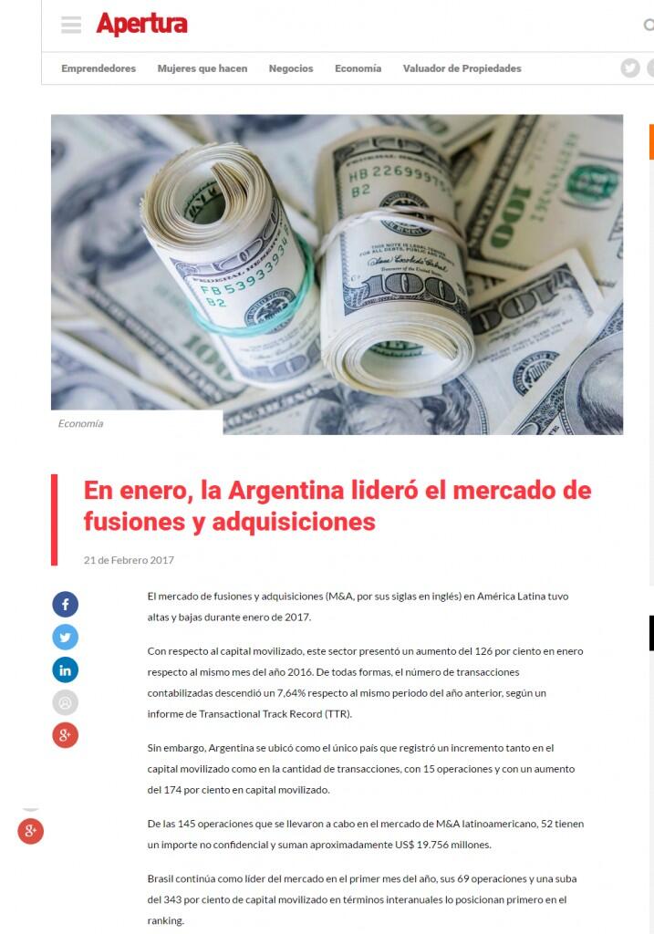 En enero, la Argentina liderķ el mercado de fusiones y adquisiciones