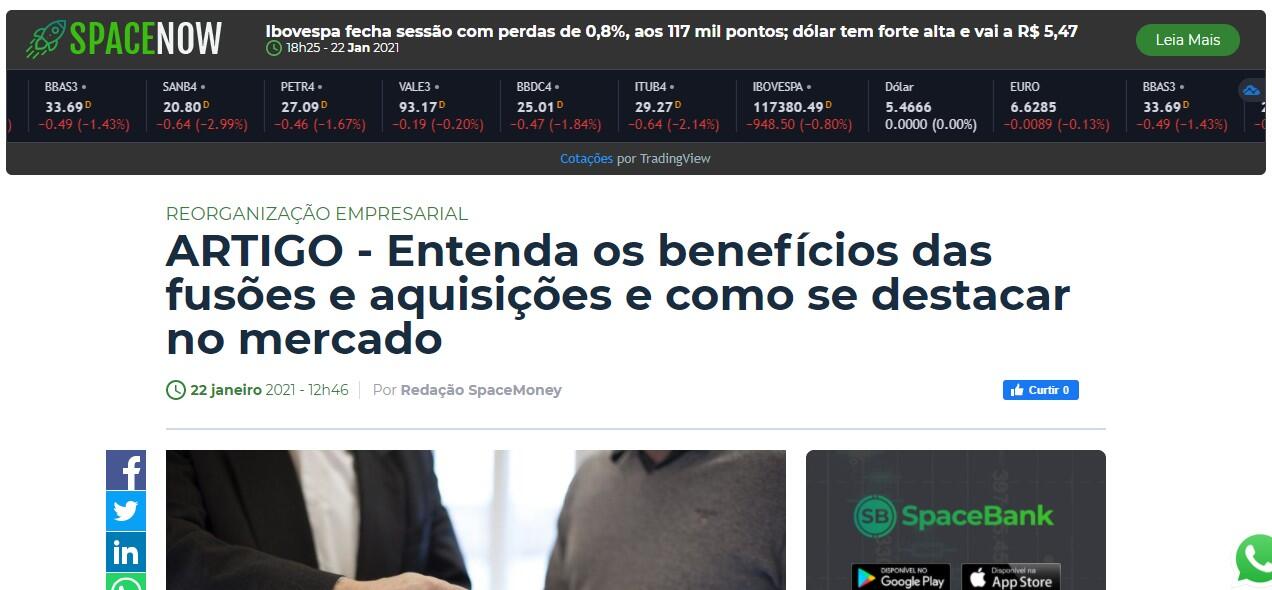 O mercado de Fusões e Aquisições no Brasil movimenta uma grande quantidade de capital e frequentemente são citadas na mídia. Segundo o relatório do boletim mensal da consultoria Transactional Track Record (TTR), o mercado brasileiro teve 1.309 fusões e aquisições até novembro de 2020, com foco no setor de tecnologia, com 435 transações.