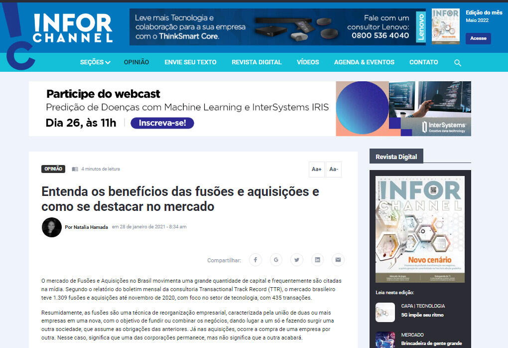 O mercado de Fusões e Aquisições no Brasil movimenta uma grande quantidade de capital e frequentemente são citadas na mídia. Segundo o relatório do boletim mensal da consultoria Transactional Track Record (TTR), o mercado brasileiro teve 1.309 fusões e aquisições até novembro de 2020, com foco no setor de tecnologia, com 435 transações.