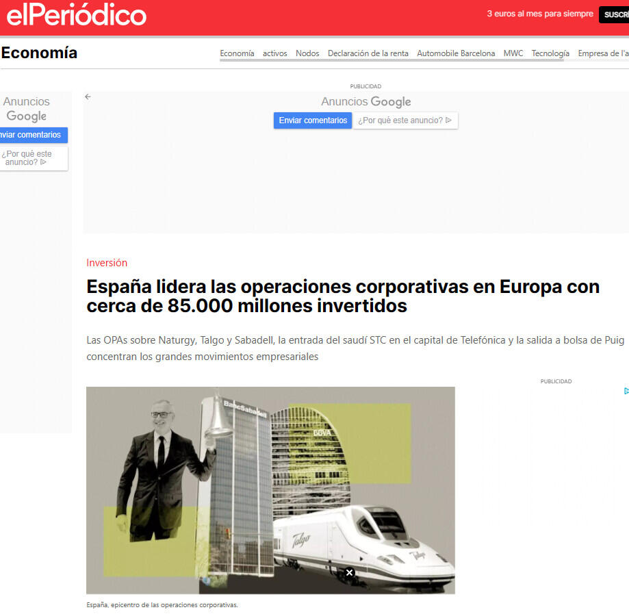 España está de moda en el mundo corporativo. Las ofertas públicas de adquisición (OPAs) sobre Naturgy, Talgo, Applus y Sabadell, la entrada de la saudí STC en Telefónica mediante la adquisición del 9,9% de su capital y la salida a bolsa de Puig encabezan las grandes operaciones empresariales en el último año y medio y copan el 70% de la inversión total, que alcanza la cifra de 78.559 millones de euros. Hay tres razones por las que los movimientos empresariales se han concentrado en nuestro país: el bajo coste de las empresas españolas en comparación con otras europeas, la alta presencia de actores internacionales en el accionariado del tejido empresarial español y la estabilidad del marco regulatorio.
