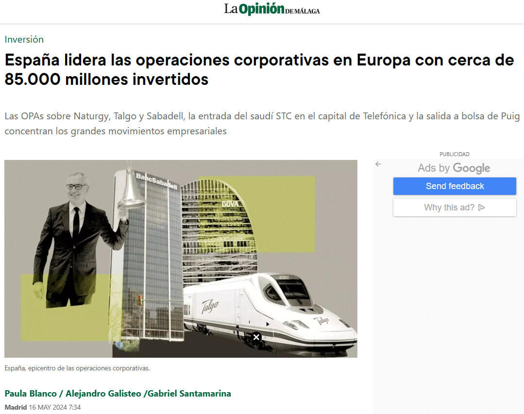 España está de moda en el mundo corporativo. Las ofertas públicas de adquisición (opas) sobre Naturgy, Talgo, Applus y Sabadell, la entrada de la saudí STC en Telefónica mediante la adquisición del 9,9% de su capital y la salida a bolsa de Puig encabezan las grandes operaciones empresariales en el último año y medio y copan el 70% de la inversión total, que alcanza la cifra de 85.000 millones de euros. Hay tres razones por las que los movimientos empresariales se han concentrado en nuestro país: el bajo coste de las empresas españolas en comparación con otras europeas, la alta presencia de actores internacionales en el accionariado del tejido empresarial español y la estabilidad del marco regulatorio.