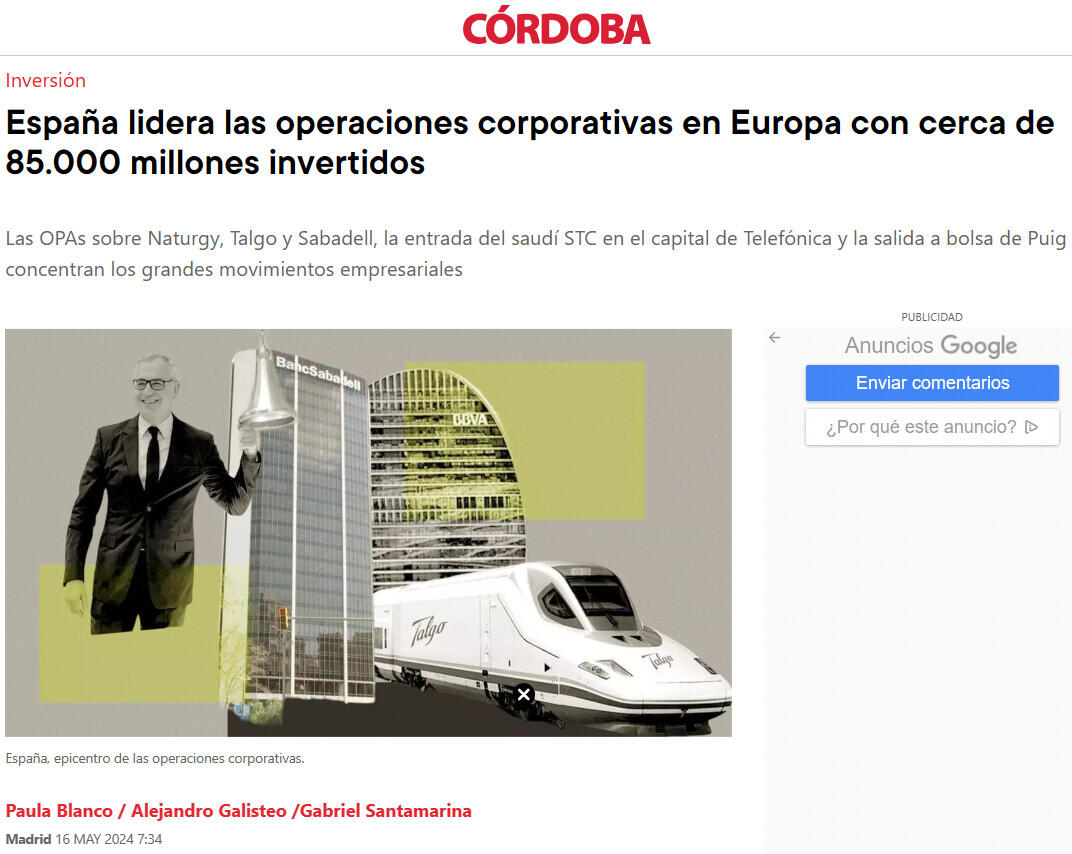 España está de moda en el mundo corporativo. Las ofertas públicas de adquisición (opas) sobre Naturgy, Talgo, Applus y Sabadell, la entrada de la saudí STC en Telefónica mediante la adquisición del 9,9% de su capital y la salida a bolsa de Puig encabezan las grandes operaciones empresariales en el último año y medio y copan el 70% de la inversión total, que alcanza la cifra de 85.000 millones de euros. Hay tres razones por las que los movimientos empresariales se han concentrado en nuestro país: el bajo coste de las empresas españolas en comparación con otras europeas, la alta presencia de actores internacionales en el accionariado del tejido empresarial español y la estabilidad del marco regulatorio.