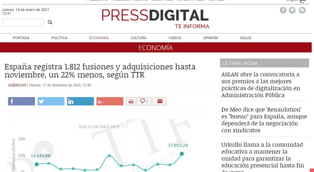 En cuanto a las perspectivas del mercado transaccional de España, el informe de TTR recoge las estimaciones de Allen & Overy Spain, que ha detectado más reestructuraciones societarias tras el verano y prevé que seguirán aumentando el próximo año. "Coincido con la mayoría de los que nos dedicamos a esto, que 2021 va a ser un año récord en operaciones de reestructuración", ha señalado Íñigo del Val, socio de fusiones y adquisiciones (M&A) de la firma.